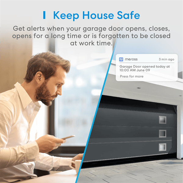 Thông báo trạng thái: Nhận thông báo khi cửa garage mở/đóng, mở quá lâu hoặc qua đêm