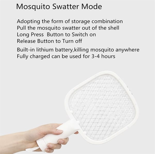 2 trong 1: Kết hợp giữa vợt điện cầm tay và đèn diệt muỗi cố định, linh hoạt trong sử dụng.
