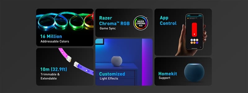 Đèn led dây thông minh Yeelight Lightstrip Pro có một chip IC tích hợp, có thể hiển thị đồng thời các màu RGB khác nhau trong cùng một dải cùng 1 thời điểm để khắc họa những khoảnh khắc riêng. Đèn 16 triệu màu Xiaomi Yeelight góp phần làm không gian thêm sống động, dễ dàng sync với màn hình tivi/máy tính, đổi màu theo âm nhạc, đặc biệt tích hợp với Razer Chroma khiến trải nghiệm chơi game nhập vai hơn…