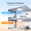 Thiết kế không cánh: An toàn tuyệt đối cho trẻ nhỏ và người cao tuổi. Không tạo gió xoáy mạnh như quạt trần truyền thống, tránh cảm lạnh, viêm xoang. Kiểu dáng phẳng, gọn nhẹ: Gắn trần như một chiếc đèn LED thông thường, tiết kiệm không gian, phù hợp với trần thấp hoặc thiết kế hiện đại. Mặt đèn acrylic khuếch tán ánh sáng: Giúp ánh sáng tỏa đều, dịu mắt và không gây chói.