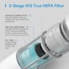 Hiệu suất lọc: Loại bỏ 99,97% các hạt có kích thước 0,3 micron, bao gồm lông thú cưng, tóc, phấn hoa, mùi hôi, khói, VOCs và các chất độc hại khác trong không khí