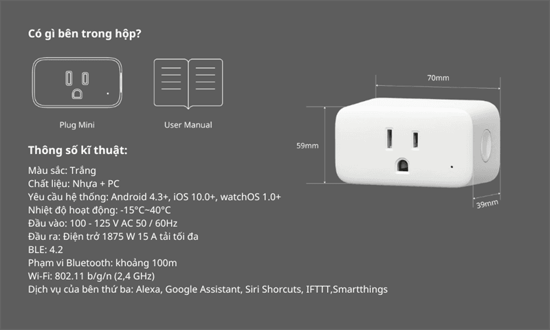 – Kích thước: 70 x 39 x 59 mm